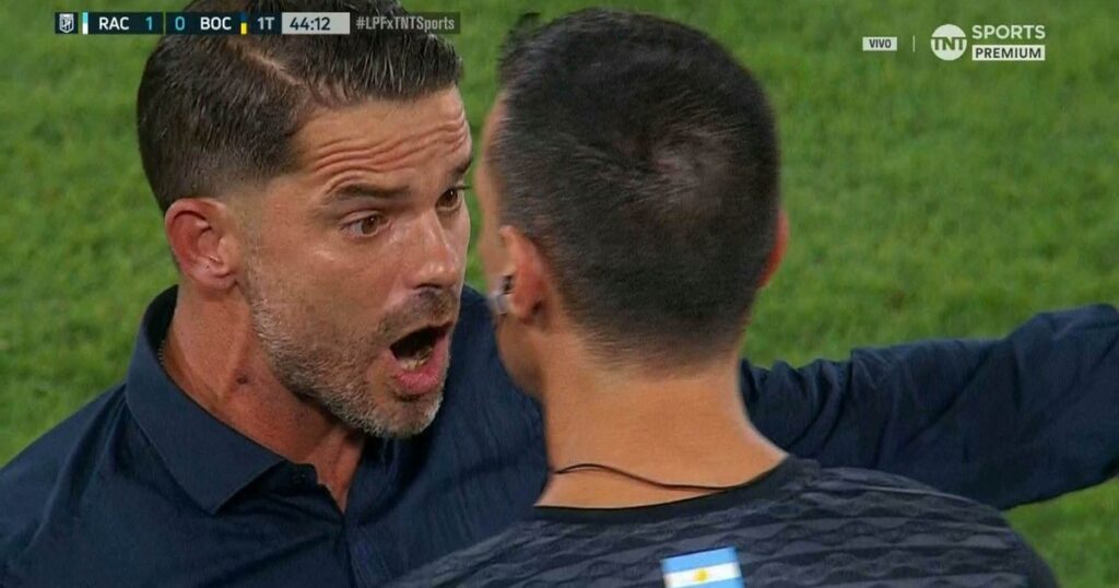 Martirena hizo el lateral del gol varios metros adelante y generó la bronca de Gago y todo Boca.Racing –