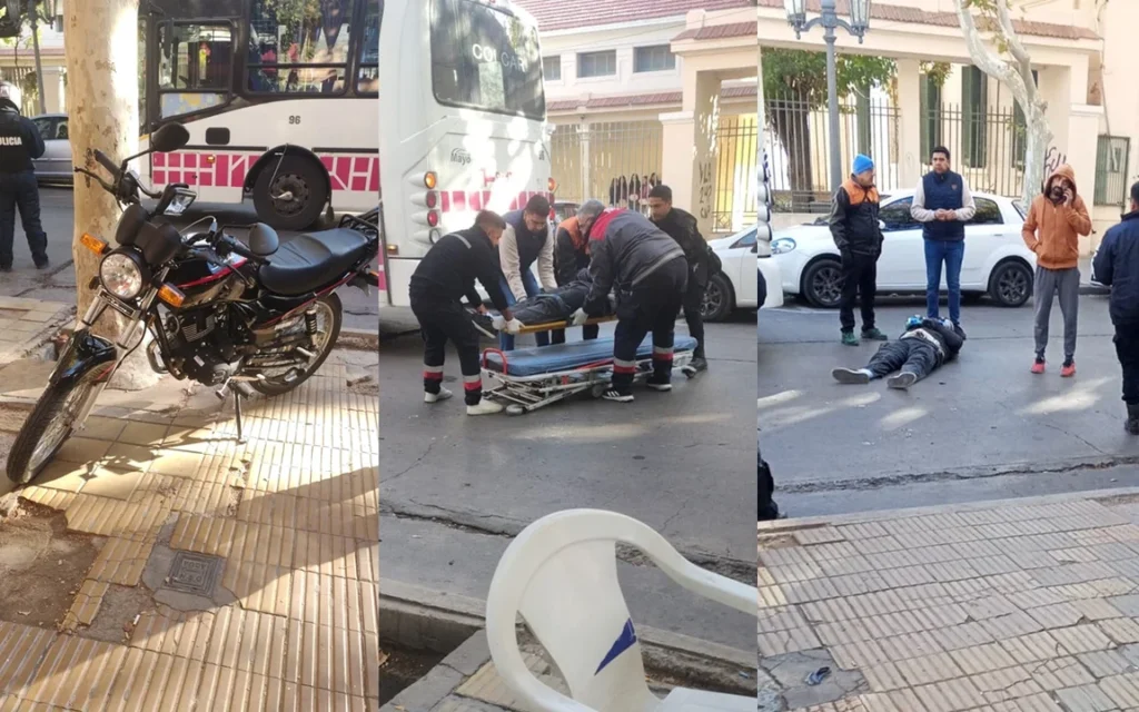 Justo detrás circulaba una motocicleta, cuyo conductor no logró frenar a tiempo ni esquivar el vehículo detenido. Producto de ello, terminó impactando contra el colectivo, resultando herido y quedando tendido sobre el pavimento.